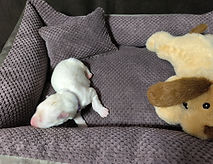 Ab dem 10.-13. Tag beginnen die Sinne des Welpen zu erwachen. Die ersten Welpen werden ihre Augen und Ohren öffnen. Damit sind sie in einer „Übergangsphase“, die die Vorbereitung für das künftige Sozialleben unserer Mäuse darstellt! Sie sind dann in der Lage, ihre Umwelt aktiv zu entdecken. Oh, wie spannend!!! Ab dem 17. Tag ist aber erst wirkliches Hören, Sehen und Riechen möglich!